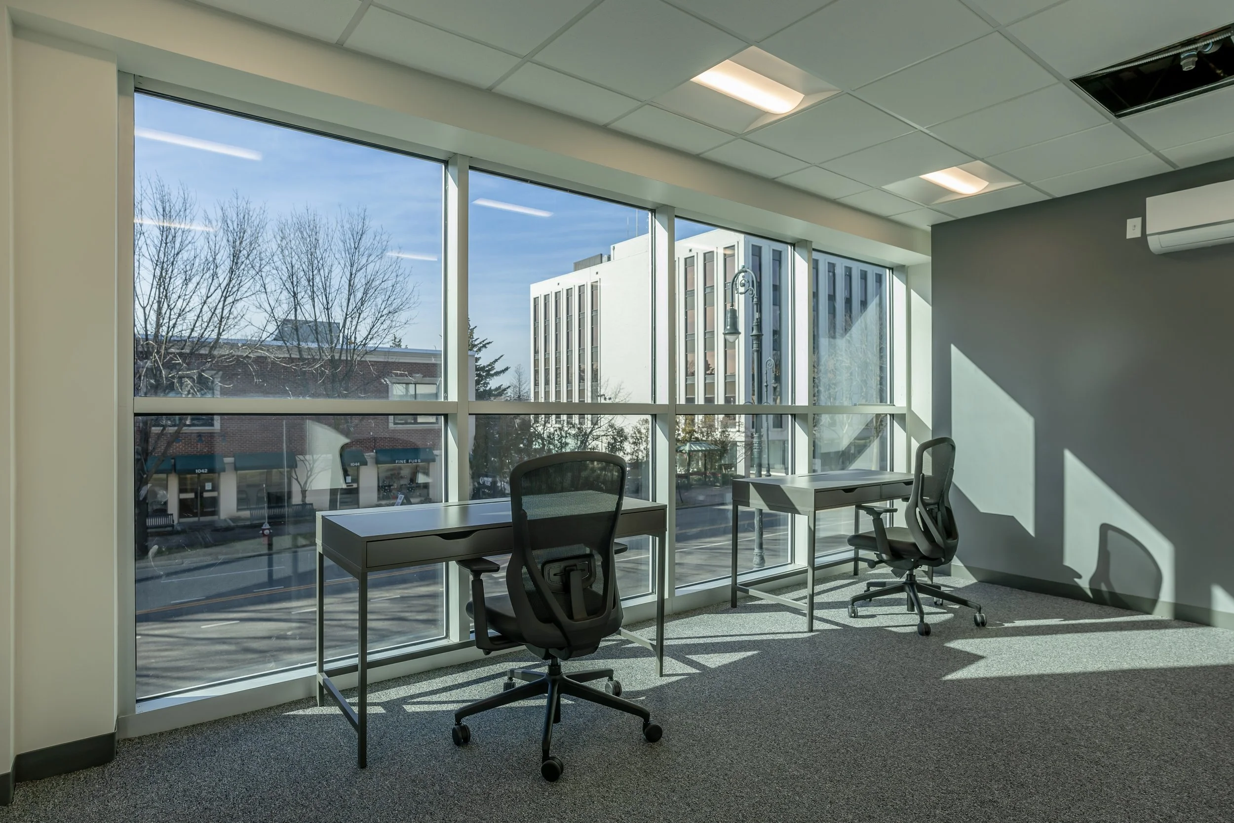 The Franklin provides 57 comprehensive turnkey modern workspaces featuring fully furnished private offices. Many of these spaces boast expansive floor-to-ceiling windows with views of Franklin Avenue.